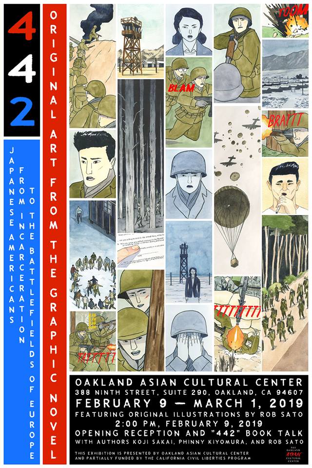 Hey Bay Area folks: An exhibition of the original illustrations from the 442 comic (plus more) will be on display at the Oakland Asian Cultural Center starting this Saturday. The authors Phinny Kiyomura and I and will be illustrator Robert Sato will be there talking about the project and handing out books. Angry Asian American art! Oppression anecdotes! Free books!