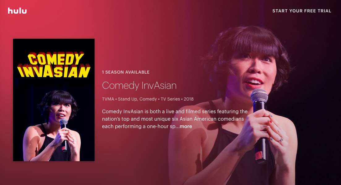 Laugh out loud for six hours is only a click away on Hulu: https://www.hulu.com/series/comedy-invasian-e6eaee12-b3ed-4cd1-818c-8b47da1ec8cd