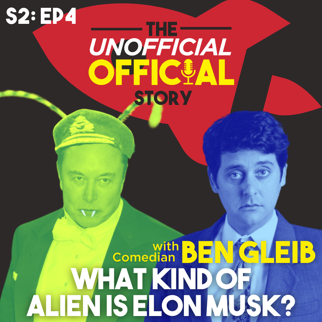 In episode 4 of season 2, comedian Ben Gleib joined the Unofficial Official Story team to answer the question: What kind of alien is Elon Musk? In this episode, we discuss Ben’s run for president, bagels at Starbucks, rehab, how good Elon would be in bed, and more!