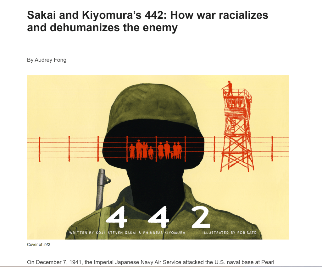 On December 7, 1941, the Imperial Japanese Navy Air Service attacked the U.S. naval base at Pearl Harbor. In response, the U.S. declared war against Japan, thus entering WWII. The U.S. forcibly relocated over 120,000 Japanese Americans into mass incarceration camps, marking the only time in history that innocent U.S. residents and citizens were forcefully incarcerated by the U.S. on the basis of race. The U.S. feared that Japanese Americans were loyal to Japan, making them dangerous to the U.S. However, as the U.S. needed more men for the war, the U.S. turned to Japanese Americans, despite having earlier labeled them as enemies. They even recruited men from the camps. In the 2019 graphic novel, 442, Koji Steven Sakai and Phinneas Kiyomura explore how the racialization of the Japanese enemy led to Japanese Americans being dehumanized and having their lives devalued.